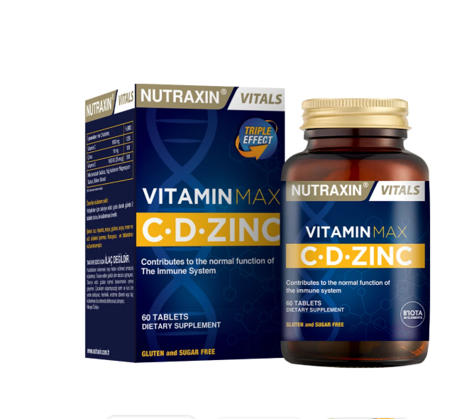 Nutraxin Vitamin Max; içeriğinde bulunan C vitamini, D vitamini ve çinko ile üç güçlü bileşeni bir arada sunmaktadır. Her porsiyonu 1000 mg C vitamini, 1000 IU D vitamini ve 10 mg çinko içermektedir.